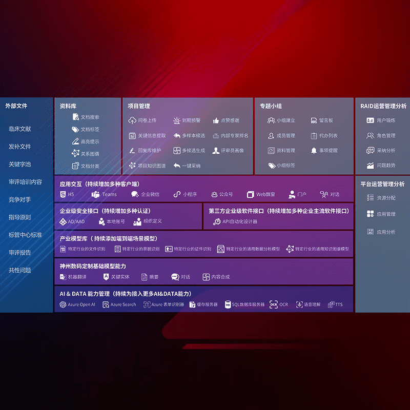 医疗器械产品上市前,,,,要熟悉严格与繁复评审标准,,,整理分析监管机构指导文件中的海量信息。。。。企业急需一个智能化解决方案,,,,提升知识管理效率,,,提高评审通过率,,,以提升其市场竞争力。。